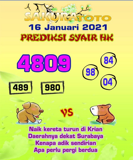 Permainan togel online ini sangatlah membutuhkan kesadaran diri di dalam membaca dan memprediksi suatu angka. Maka dari itu kunjungi selalu kode syair hk hari ini dimana dalam forum syairhk hari ini yang kami terbitkan ini akan jauh lebih memudahkan anda dalam menebak angka keluaran di periode selanjutnya. Kami juga sudah mempersiapkan Prediksi Syair Hongkong Akurat 16 Januari 2021 untuk anda member tercinta kami.