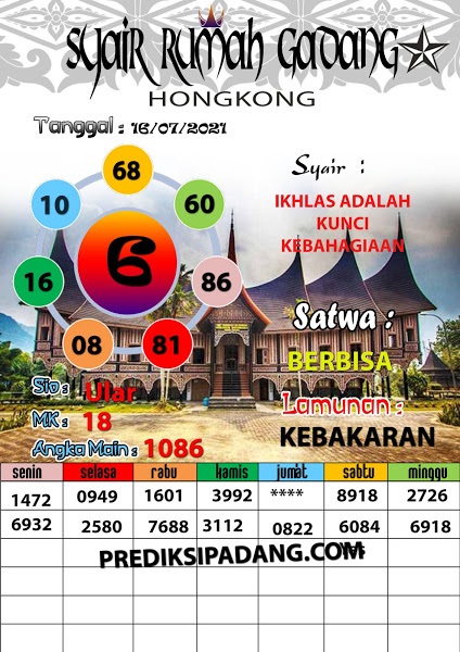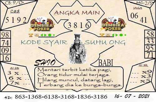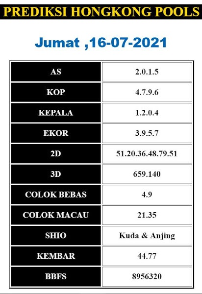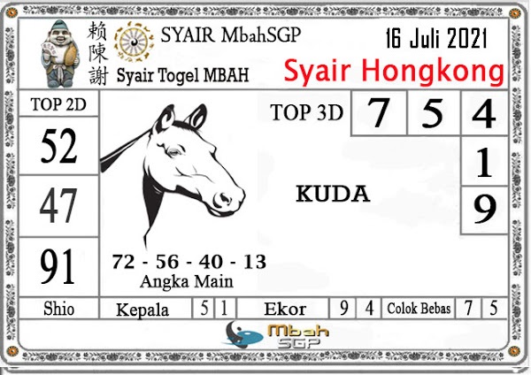 Permainan togel online ini sangatlah membutuhkan kesadaran diri di dalam membaca dan memprediksi suatu angka. Maka dari itu kunjungi selalu kode syair hk hari ini dimana dalam forum syairhk hari ini yang kami terbitkan ini akan jauh lebih memudahkan anda dalam menebak angka keluaran di periode selanjutnya. Kami juga sudah mempersiapkan Prediksi Syair Hongkong Akurat 16 Juli 2021 untuk anda member tercinta kami.