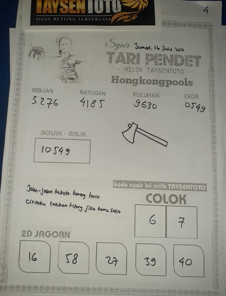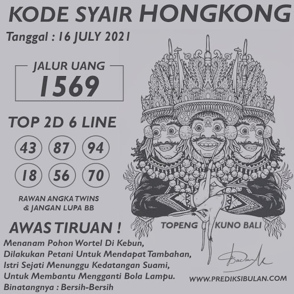 Tetaplah pergunakan perasaan anda sendiri untuk memahami semua makna dari Syair HK 16 Juli 2021. Jangan terlalu terburu – buru ya saat membaca semua makna dari syair hk kami ini. Pahami dan cerna secara pelan dan pilih lah salah satu syair yang paling terfavorit oleh para penikmat pecinta judi togel online. Oh ya tahukan kalian pada dasarnya ada beberapa syair yang paling banyak dicari oleh jutaan para pemain judi togel online seperti syair kampleng, syair pandawa hk, syair mbah semar, syair hk naga mas.