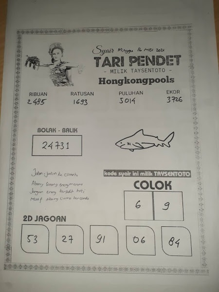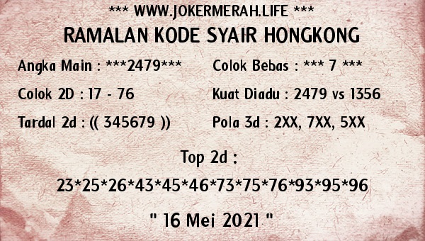 Permainan togel online ini sangatlah membutuhkan kesadaran diri di dalam membaca dan memprediksi suatu angka. Maka dari itu kunjungi selalu kode syair hk hari ini dimana dalam forum syairhk hari ini yang kami terbitkan ini akan jauh lebih memudahkan anda dalam menebak angka keluaran di periode selanjutnya. Kami juga sudah mempersiapkan Prediksi Syair Hongkong Akurat 16 Mei 2021 untuk anda member tercinta kami.