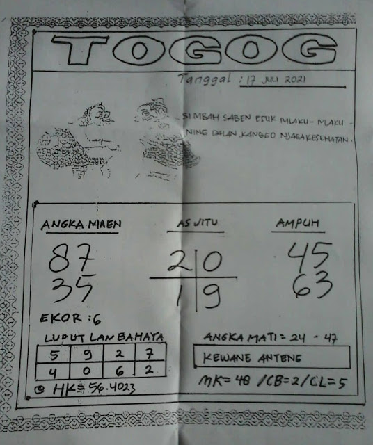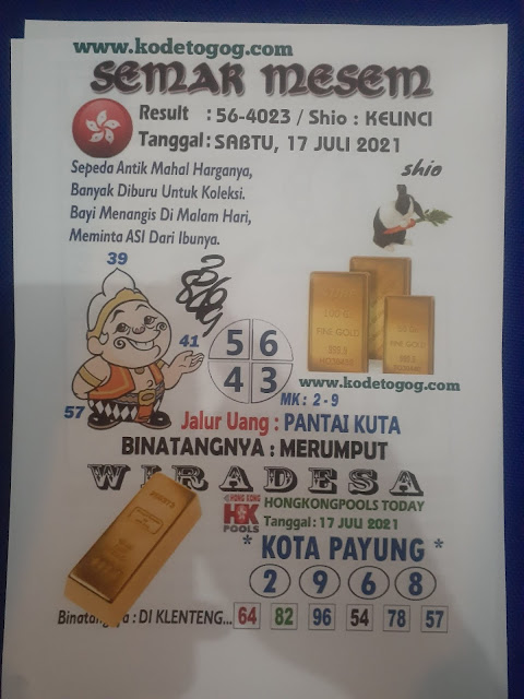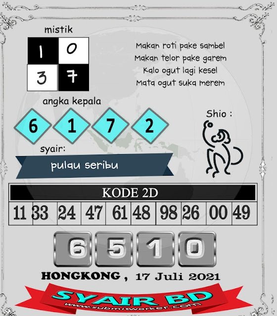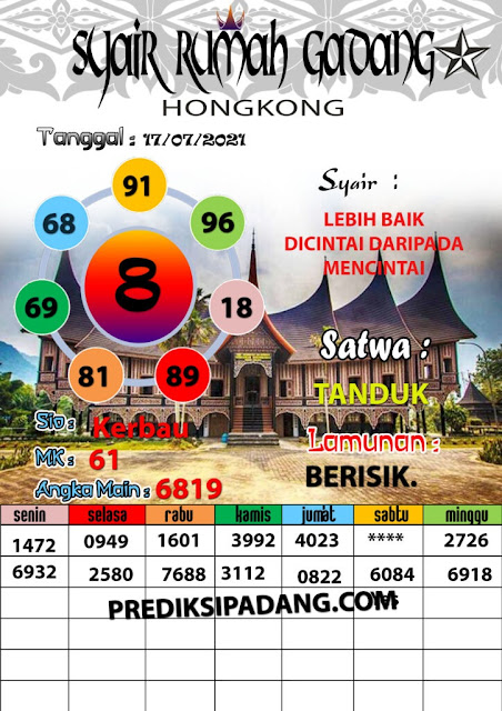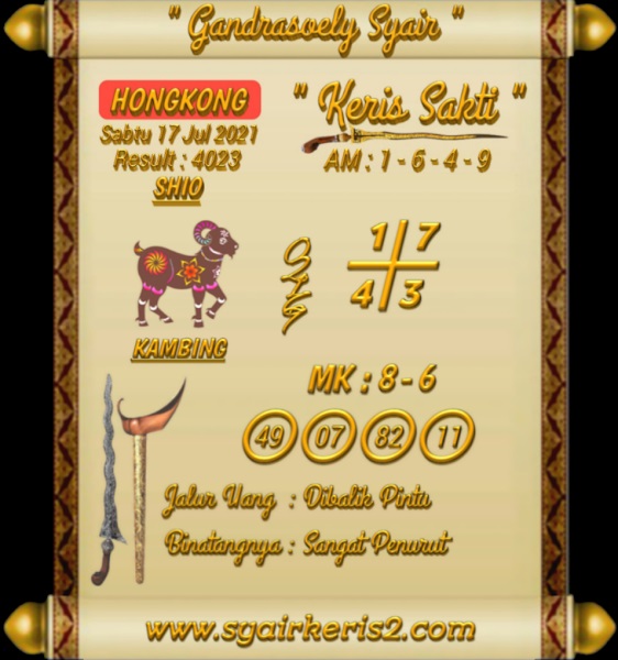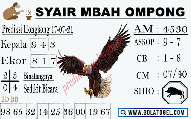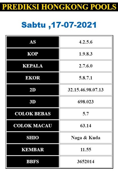 Permainan togel online ini sangatlah membutuhkan kesadaran diri di dalam membaca dan memprediksi suatu angka. Maka dari itu kunjungi selalu kode syair hk hari ini dimana dalam forum syairhk hari ini yang kami terbitkan ini akan jauh lebih memudahkan anda dalam menebak angka keluaran di periode selanjutnya. Kami juga sudah mempersiapkan Prediksi Syair Hongkong Akurat 17 Juli 2021 untuk anda member tercinta kami.