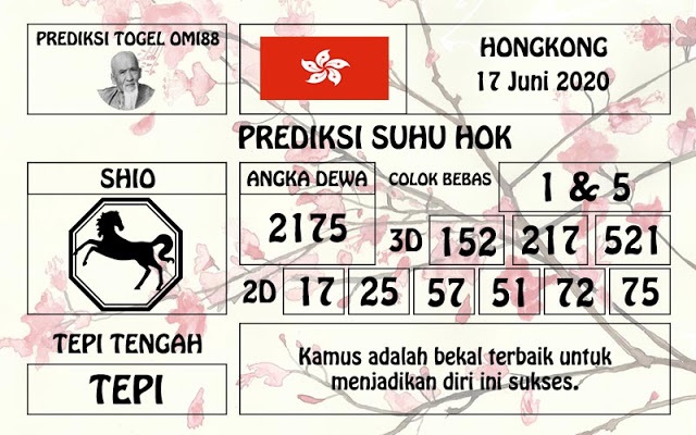 Permainan togel online ini sangatlah membutuhkan kesadaran diri di dalam membaca dan memprediksi suatu angka. Maka dari itu kunjungi selalu kode syair hk hari ini dimana dalam forum syair hk hari ini yang kami terbitkan ini akan jauh lebih memudahkan anda dalam menebak angka keluaran di periode selanjutnya. Kami juga sudah mempersiapkan Prediksi HK Akurat 17 Juni 2020 untuk anda member tercinta kami.