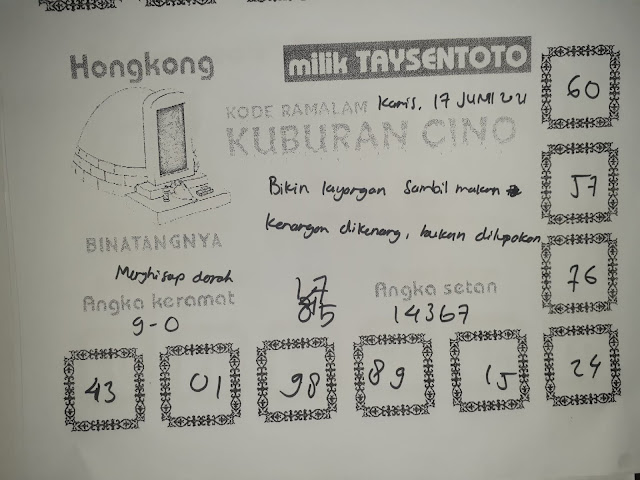 Permainan togel online ini sangatlah membutuhkan kesadaran diri di dalam membaca dan memprediksi suatu angka. Maka dari itu kunjungi selalu kode syair hk hari ini dimana dalam forum syairhk hari ini yang kami terbitkan ini akan jauh lebih memudahkan anda dalam menebak angka keluaran di periode selanjutnya. Kami juga sudah mempersiapkan Prediksi Syair Hongkong Akurat 17 Juni 2021 untuk anda member tercinta kami.