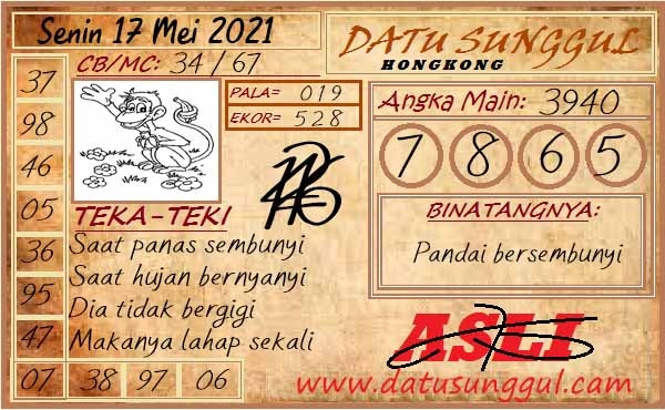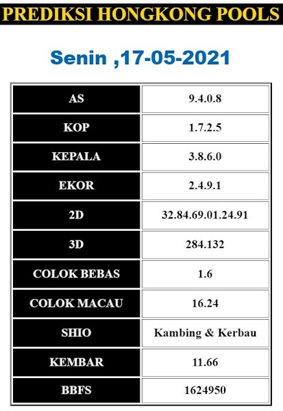 Syair Hk Senin 17 Mei 2021