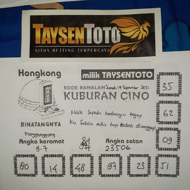 Permainan togel online ini sangatlah membutuhkan kesadaran diri di dalam membaca dan memprediksi suatu angka. Maka dari itu kunjungi selalu kode syair hk hari ini dimana dalam forum syairhk hari ini yang kami terbitkan ini akan jauh lebih memudahkan anda dalam menebak angka keluaran di periode selanjutnya. Kami juga sudah mempersiapkan Prediksi Syair Hongkong Akurat 17 September 2021 untuk anda member tercinta kami.