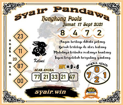 Tetaplah pergunakan perasaan anda sendiri untuk memahami semua makna dari Syair HK 17 September 2021. Jangan terlalu terburu – buru ya saat membaca semua makna dari syair hk kami ini. Pahami dan cerna secara pelan dan pilih lah salah satu syair yang paling terfavorit oleh para penikmat pecinta judi togel online. Oh ya tahukan kalian pada dasarnya ada beberapa syair yang paling banyak dicari oleh jutaan para pemain judi togel online seperti syair kampleng, syair pandawa hk, syair mbah semar, syair hk naga mas.