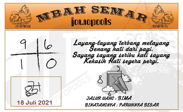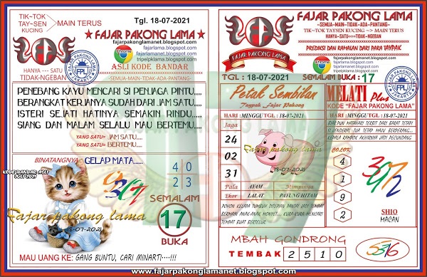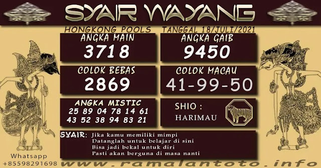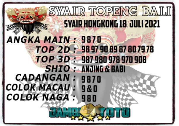 Tetaplah pergunakan perasaan anda sendiri untuk memahami semua makna dari Syair HK 18 Juli 2021. Jangan terlalu terburu – buru ya saat membaca semua makna dari syair hk kami ini. Pahami dan cerna secara pelan dan pilih lah salah satu syair yang paling terfavorit oleh para penikmat pecinta judi togel online. Oh ya tahukan kalian pada dasarnya ada beberapa syair yang paling banyak dicari oleh jutaan para pemain judi togel online seperti syair kampleng, syair pandawa hk, syair mbah semar, syair hk naga mas.