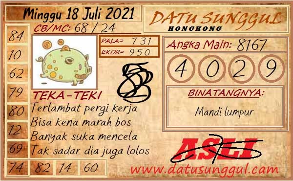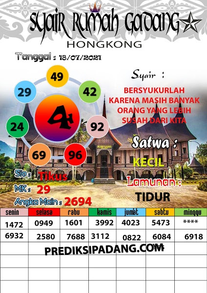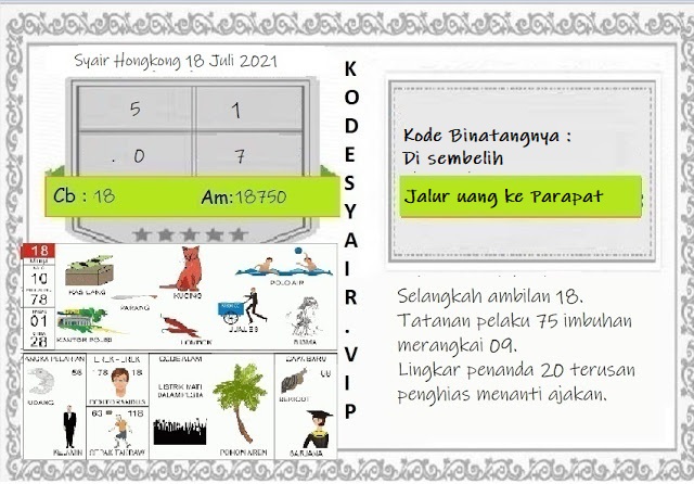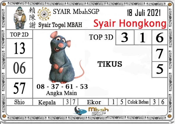 Permainan togel online ini sangatlah membutuhkan kesadaran diri di dalam membaca dan memprediksi suatu angka. Maka dari itu kunjungi selalu kode syair hk hari ini dimana dalam forum syairhk hari ini yang kami terbitkan ini akan jauh lebih memudahkan anda dalam menebak angka keluaran di periode selanjutnya. Kami juga sudah mempersiapkan Prediksi Syair Hongkong Akurat 18 Juli 2021 untuk anda member tercinta kami.