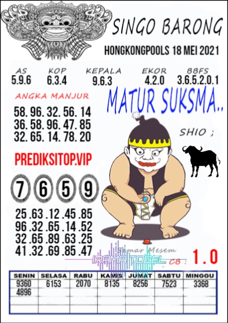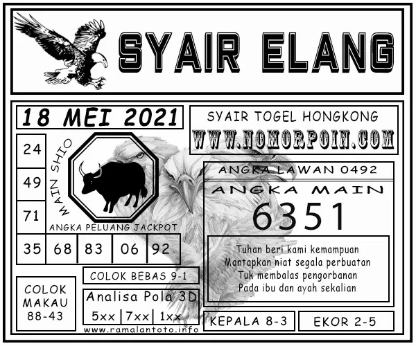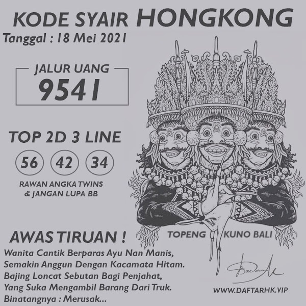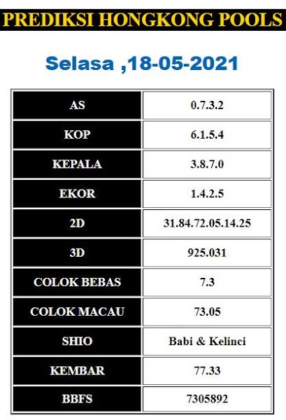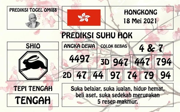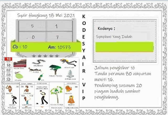 Permainan togel online ini sangatlah membutuhkan kesadaran diri di dalam membaca dan memprediksi suatu angka. Maka dari itu kunjungi selalu kode syair hk hari ini dimana dalam forum syairhk hari ini yang kami terbitkan ini akan jauh lebih memudahkan anda dalam menebak angka keluaran di periode selanjutnya. Kami juga sudah mempersiapkan Prediksi Syair Hongkong Akurat 18 Mei 2021 untuk anda member tercinta kami.