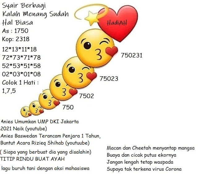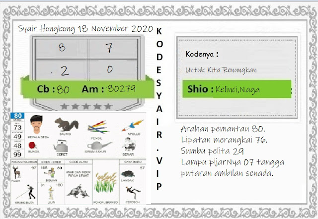 Tetaplah pergunakan perasaan anda sendiri untuk memahami semua makna dari Syair HK 18 November 2020. Jangan terlalu terburu – buru ya saat membaca semua makna dari syair hk kami ini. Pahami dan cerna secara pelan dan pilih lah salah satu syair yang paling terfavorit oleh para penikmat pecinta judi togel online. Oh ya tahukan kalian pada dasarnya ada beberapa syair yang paling banyak dicari oleh jutaan para pemain judi togel online seperti syair kampleng, syair pandawa hk, syair mbah semar, syair hk naga mas.
