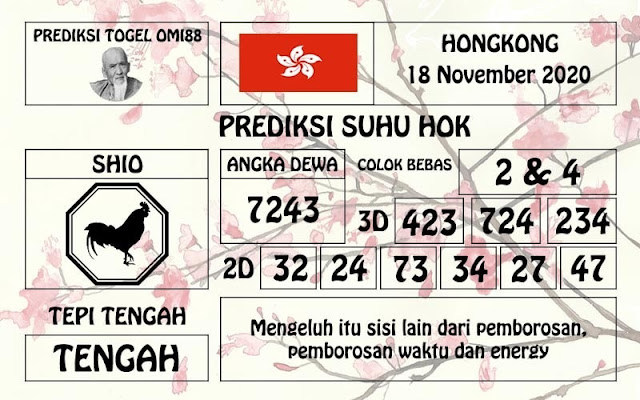 Permainan togel online ini sangatlah membutuhkan kesadaran diri di dalam membaca dan memprediksi suatu angka. Maka dari itu kunjungi selalu kode syair hk hari ini dimana dalam forum syairhk hari ini yang kami terbitkan ini akan jauh lebih memudahkan anda dalam menebak angka keluaran di periode selanjutnya. Kami juga sudah mempersiapkan Prediksi HK Akurat 18 November 2020 untuk anda member tercinta kami.