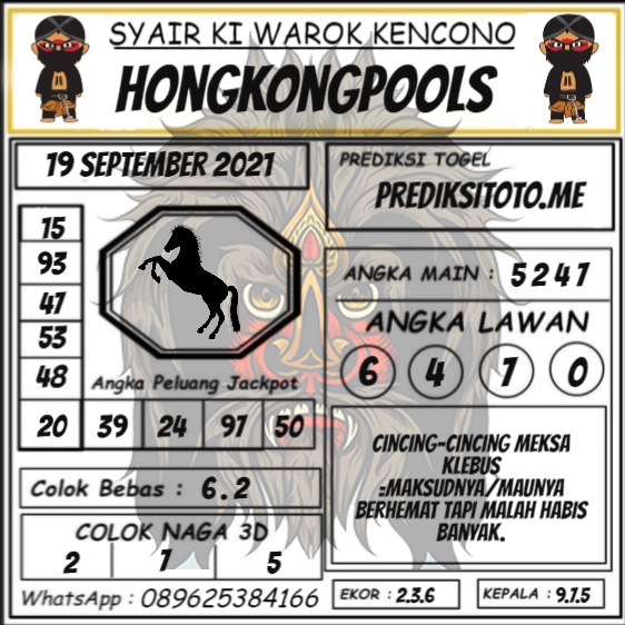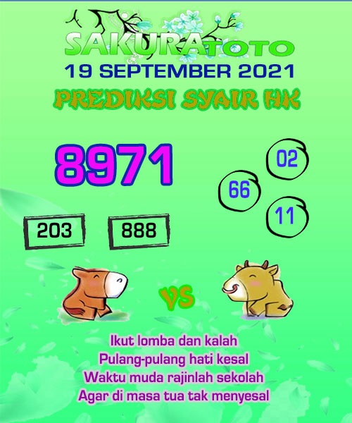 Permainan togel online ini sangatlah membutuhkan kesadaran diri di dalam membaca dan memprediksi suatu angka. Maka dari itu kunjungi selalu kode syair hk hari ini dimana dalam forum syairhk hari ini yang kami terbitkan ini akan jauh lebih memudahkan anda dalam menebak angka keluaran di periode selanjutnya. Kami juga sudah mempersiapkan Prediksi Syair Hongkong Akurat 19 September 2021 untuk anda member tercinta kami.