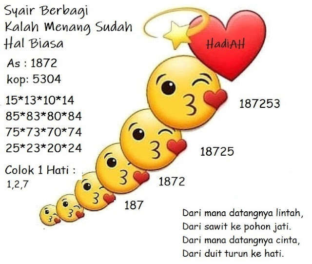 Yuk Daftar togel online di JON4D untuk mendapatkan syair togel hk atau nama yang lebih populer togel hongkong. Tentu saja semua Prediksi Syair Hongkong yang telah kami berikan adalah yang paling favorit oleh para pecinta judi online dan pemain togel hk (togel hongkong). Nah, maka itu tidak salah lagi apabila anda sebagai pecinta togel online mengikuti terus semua Prediksi Togel HK yang kami terbitkan setiap hari agar lebih tepat dalam memprediksi dan selalu memenangkan judi online ini.