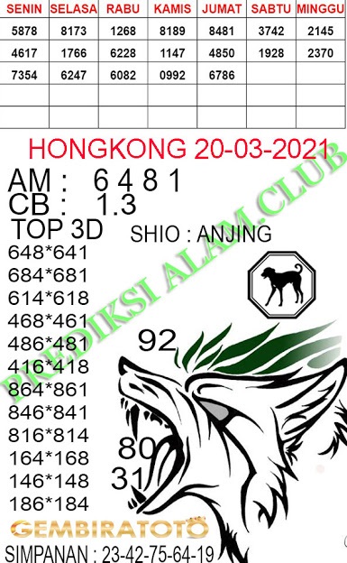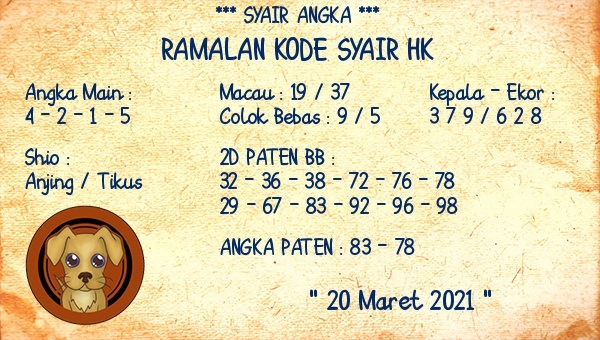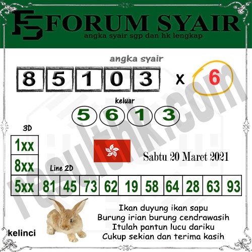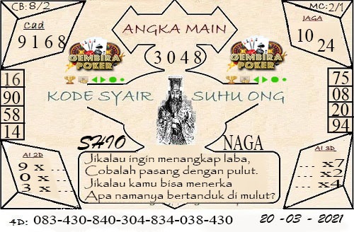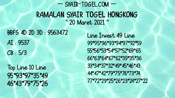 Permainan togel online ini sangatlah membutuhkan kesadaran diri di dalam membaca dan memprediksi suatu angka. Maka dari itu kunjungi selalu kode syair hk hari ini dimana dalam forum syairhk hari ini yang kami terbitkan ini akan jauh lebih memudahkan anda dalam menebak angka keluaran di periode selanjutnya. Kami juga sudah mempersiapkan Prediksi Syair Hongkong Akurat 20 Maret 2021 untuk anda member tercinta kami.