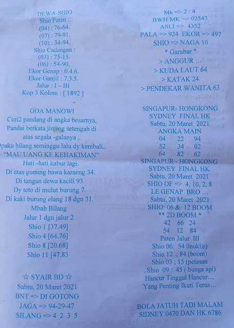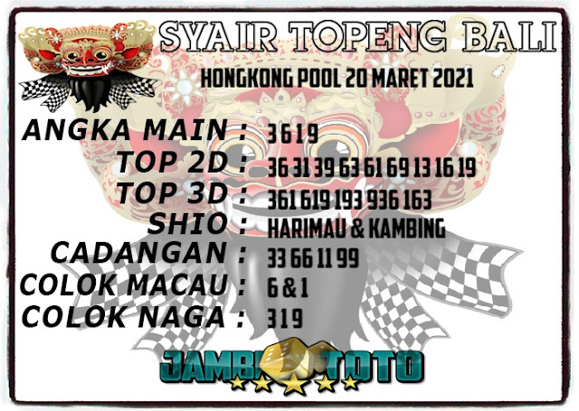 Tetaplah pergunakan perasaan anda sendiri untuk memahami semua makna dari Syair HK 20 Maret 2021. Jangan terlalu terburu – buru ya saat membaca semua makna dari syair hk kami ini. Pahami dan cerna secara pelan dan pilih lah salah satu syair yang paling terfavorit oleh para penikmat pecinta judi togel online. Oh ya tahukan kalian pada dasarnya ada beberapa syair yang paling banyak dicari oleh jutaan para pemain judi togel online seperti syair kampleng, syair pandawa hk, syair mbah semar, syair hk naga mas.