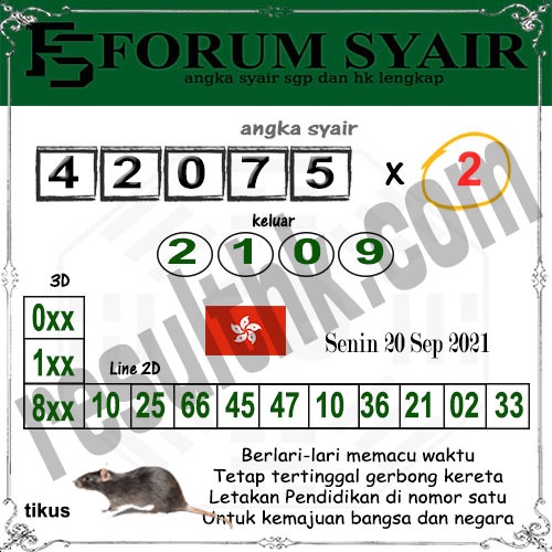 Permainan togel online ini sangatlah membutuhkan kesadaran diri di dalam membaca dan memprediksi suatu angka. Maka dari itu kunjungi selalu kode syair hk hari ini dimana dalam forum syairhk hari ini yang kami terbitkan ini akan jauh lebih memudahkan anda dalam menebak angka keluaran di periode selanjutnya. Kami juga sudah mempersiapkan Prediksi Syair Hongkong Akurat 20 September 2021 untuk anda member tercinta kami.