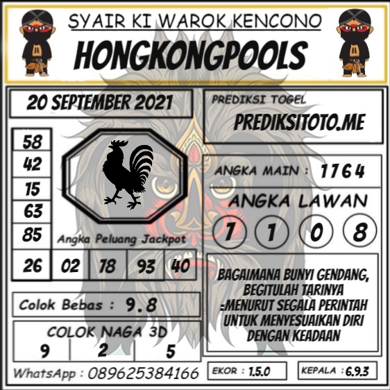 Tetaplah pergunakan perasaan anda sendiri untuk memahami semua makna dari Syair HK 20 September 2021. Jangan terlalu terburu – buru ya saat membaca semua makna dari syair hk kami ini. Pahami dan cerna secara pelan dan pilih lah salah satu syair yang paling terfavorit oleh para penikmat pecinta judi togel online. Oh ya tahukan kalian pada dasarnya ada beberapa syair yang paling banyak dicari oleh jutaan para pemain judi togel online seperti syair kampleng, syair pandawa hk, syair mbah semar, syair hk naga mas.