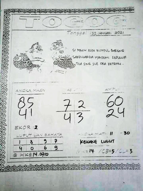 Permainan togel online ini sangatlah membutuhkan kesadaran diri di dalam membaca dan memprediksi suatu angka. Maka dari itu kunjungi selalu kode syair hk hari ini dimana dalam forum syairhk hari ini yang kami terbitkan ini akan jauh lebih memudahkan anda dalam menebak angka keluaran di periode selanjutnya. Kami juga sudah mempersiapkan Prediksi Syair Hongkong Akurat 22 Januari 2021 untuk anda member tercinta kami.