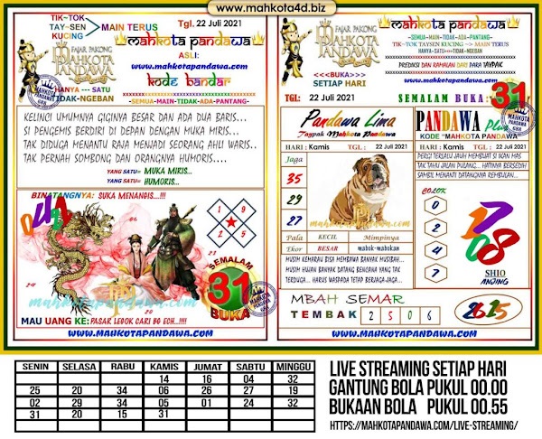 Tetaplah pergunakan perasaan anda sendiri untuk memahami semua makna dari Syair HK 22 Juli 2021. Jangan terlalu terburu – buru ya saat membaca semua makna dari syair hk kami ini. Pahami dan cerna secara pelan dan pilih lah salah satu syair yang paling terfavorit oleh para penikmat pecinta judi togel online. Oh ya tahukan kalian pada dasarnya ada beberapa syair yang paling banyak dicari oleh jutaan para pemain judi togel online seperti syair kampleng, syair pandawa hk, syair mbah semar, syair hk naga mas.