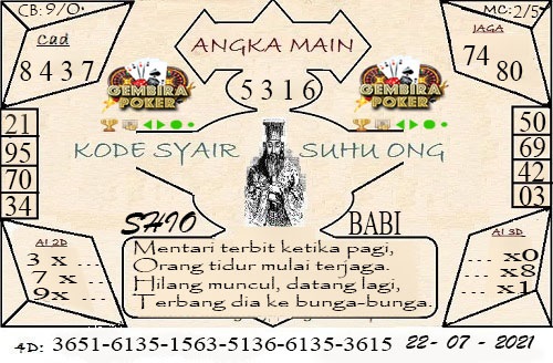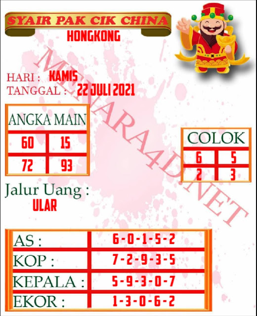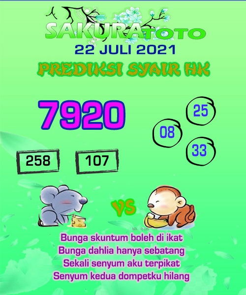 Permainan togel online ini sangatlah membutuhkan kesadaran diri di dalam membaca dan memprediksi suatu angka. Maka dari itu kunjungi selalu kode syair hk hari ini dimana dalam forum syairhk hari ini yang kami terbitkan ini akan jauh lebih memudahkan anda dalam menebak angka keluaran di periode selanjutnya. Kami juga sudah mempersiapkan Prediksi Syair Hongkong Akurat 22 Juli 2021 untuk anda member tercinta kami.