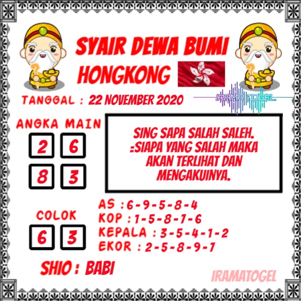 Permainan togel online ini sangatlah membutuhkan kesadaran diri di dalam membaca dan memprediksi suatu angka. Maka dari itu kunjungi selalu kode syair hk hari ini dimana dalam forum syairhk hari ini yang kami terbitkan ini akan jauh lebih memudahkan anda dalam menebak angka keluaran di periode selanjutnya. Kami juga sudah mempersiapkan Prediksi HK Akurat 22 November 2020 untuk anda member tercinta kami.