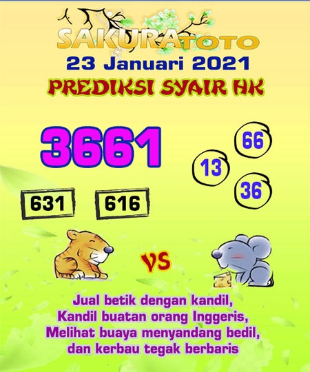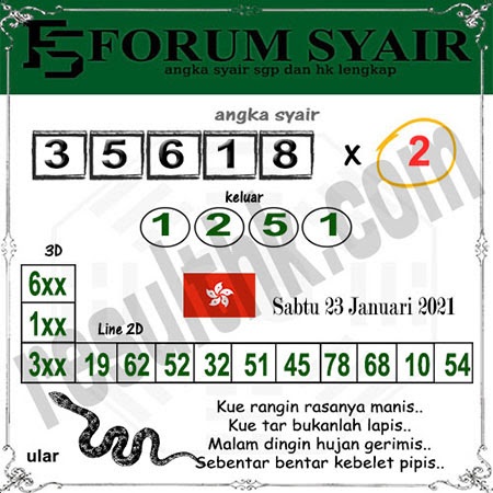 Permainan togel online ini sangatlah membutuhkan kesadaran diri di dalam membaca dan memprediksi suatu angka. Maka dari itu kunjungi selalu kode syair hk hari ini dimana dalam forum syairhk hari ini yang kami terbitkan ini akan jauh lebih memudahkan anda dalam menebak angka keluaran di periode selanjutnya. Kami juga sudah mempersiapkan Prediksi Syair Hongkong Akurat 23 Januari 2021 untuk anda member tercinta kami.
