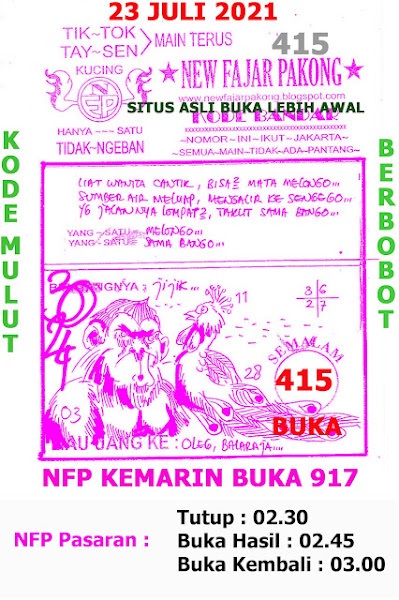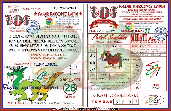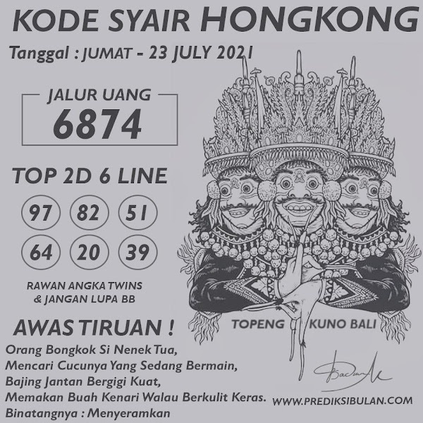 Permainan togel online ini sangatlah membutuhkan kesadaran diri di dalam membaca dan memprediksi suatu angka. Maka dari itu kunjungi selalu kode syair hk hari ini dimana dalam forum syairhk hari ini yang kami terbitkan ini akan jauh lebih memudahkan anda dalam menebak angka keluaran di periode selanjutnya. Kami juga sudah mempersiapkan Prediksi Syair Hongkong Akurat 23 Juli 2021 untuk anda member tercinta kami.