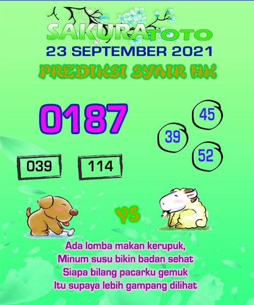 Permainan togel online ini sangatlah membutuhkan kesadaran diri di dalam membaca dan memprediksi suatu angka. Maka dari itu kunjungi selalu kode syair hk hari ini dimana dalam forum syairhk hari ini yang kami terbitkan ini akan jauh lebih memudahkan anda dalam menebak angka keluaran di periode selanjutnya. Kami juga sudah mempersiapkan Prediksi Syair Hongkong Akurat 23 September 2021 untuk anda member tercinta kami.