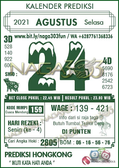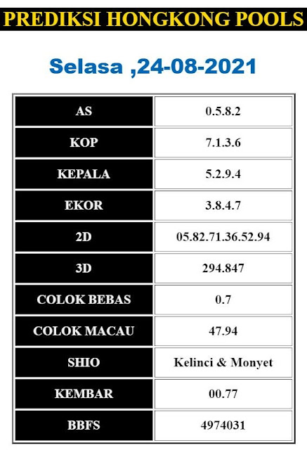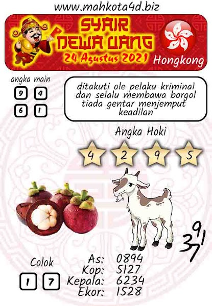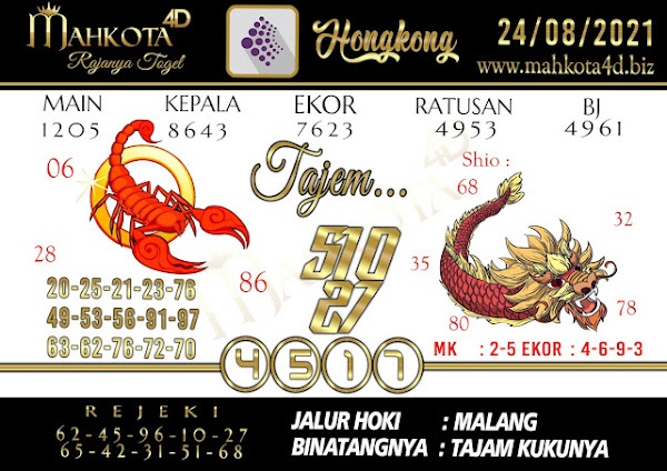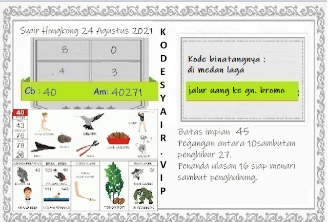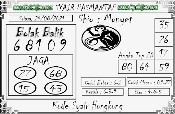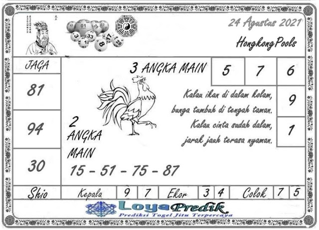 Permainan togel online ini sangatlah membutuhkan kesadaran diri di dalam membaca dan memprediksi suatu angka. Maka dari itu kunjungi selalu kode syair hk hari ini dimana dalam forum syairhk hari ini yang kami terbitkan ini akan jauh lebih memudahkan anda dalam menebak angka keluaran di periode selanjutnya. Kami juga sudah mempersiapkan Prediksi Syair Hongkong Akurat 24 Agustus 2021 untuk anda member tercinta kami.