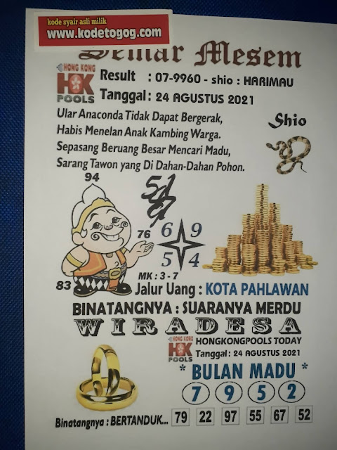 Tetaplah pergunakan perasaan anda sendiri untuk memahami semua makna dari Syair HK 24 Agustus 2021. Jangan terlalu terburu – buru ya saat membaca semua makna dari syair hk kami ini. Pahami dan cerna secara pelan dan pilih lah salah satu syair yang paling terfavorit oleh para penikmat pecinta judi togel online. Oh ya tahukan kalian pada dasarnya ada beberapa syair yang paling banyak dicari oleh jutaan para pemain judi togel online seperti syair kampleng, syair pandawa hk, syair mbah semar, syair hk naga mas.