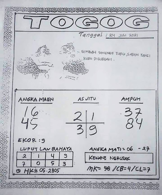 Permainan togel online ini sangatlah membutuhkan kesadaran diri di dalam membaca dan memprediksi suatu angka. Maka dari itu kunjungi selalu kode syair hk hari ini dimana dalam forum syairhk hari ini yang kami terbitkan ini akan jauh lebih memudahkan anda dalam menebak angka keluaran di periode selanjutnya. Kami juga sudah mempersiapkan Prediksi Syair Hongkong Akurat 24 Juli 2021 untuk anda member tercinta kami.