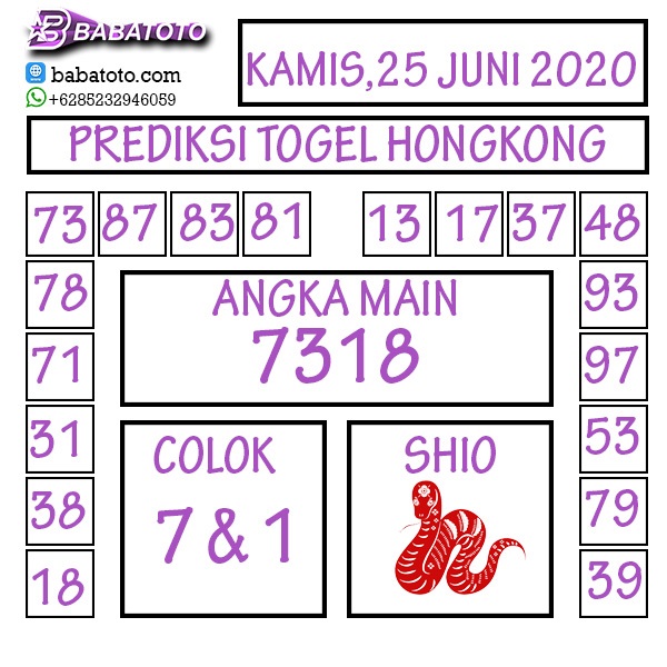 Permainan togel online ini sangatlah membutuhkan kesadaran diri di dalam membaca dan memprediksi suatu angka. Maka dari itu kunjungi selalu kode syair hk hari ini dimana dalam forum syair hk hari ini yang kami terbitkan ini akan jauh lebih memudahkan anda dalam menebak angka keluaran di periode selanjutnya. Kami juga sudah mempersiapkan Prediksi HK Akurat 25 Juni 2020 untuk anda member tercinta kami.