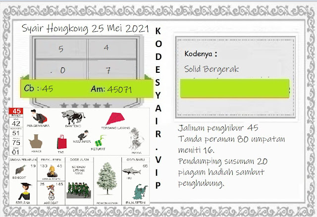Permainan togel online ini sangatlah membutuhkan kesadaran diri di dalam membaca dan memprediksi suatu angka. Maka dari itu kunjungi selalu kode syair hk hari ini dimana dalam forum syairhk hari ini yang kami terbitkan ini akan jauh lebih memudahkan anda dalam menebak angka keluaran di periode selanjutnya. Kami juga sudah mempersiapkan Prediksi Syair Hongkong Akurat 25 Mei 2021 untuk anda member tercinta kami.