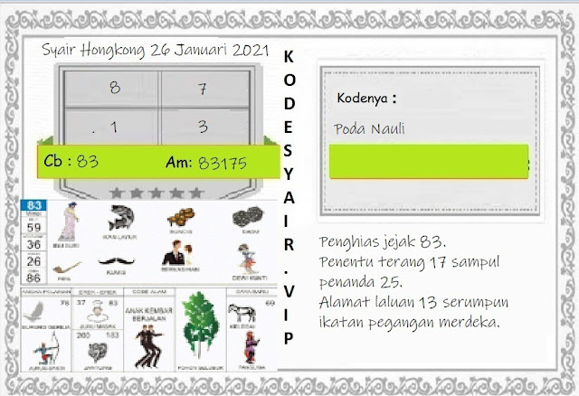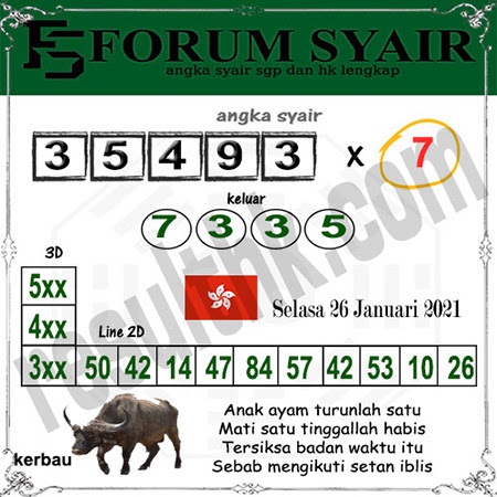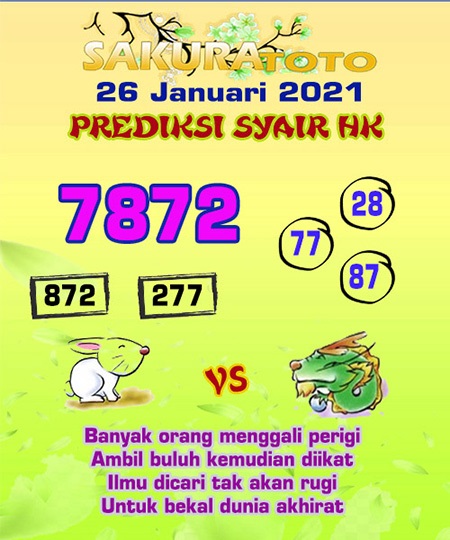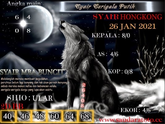 Permainan togel online ini sangatlah membutuhkan kesadaran diri di dalam membaca dan memprediksi suatu angka. Maka dari itu kunjungi selalu kode syair hk hari ini dimana dalam forum syairhk hari ini yang kami terbitkan ini akan jauh lebih memudahkan anda dalam menebak angka keluaran di periode selanjutnya. Kami juga sudah mempersiapkan Prediksi Syair Hongkong Akurat 26 Januari 2021 untuk anda member tercinta kami.