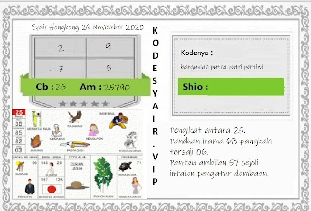 Tetaplah pergunakan perasaan anda sendiri untuk memahami semua makna dari Syair HK 26 November 2020. Jangan terlalu terburu – buru ya saat membaca semua makna dari syair hk kami ini. Pahami dan cerna secara pelan dan pilih lah salah satu syair yang paling terfavorit oleh para penikmat pecinta judi togel online. Oh ya tahukan kalian pada dasarnya ada beberapa syair yang paling banyak dicari oleh jutaan para pemain judi togel online seperti syair kampleng, syair pandawa hk, syair mbah semar, syair hk naga mas.