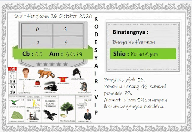 Permainan togel online ini sangatlah membutuhkan kesadaran diri di dalam membaca dan memprediksi suatu angka. Maka dari itu kunjungi selalu kode syair hk hari ini dimana dalam forum syairhk hari ini yang kami terbitkan ini akan jauh lebih memudahkan anda dalam menebak angka keluaran di periode selanjutnya. Kami juga sudah mempersiapkan Prediksi HK Akurat 26 October 2020 untuk anda member tercinta kami.