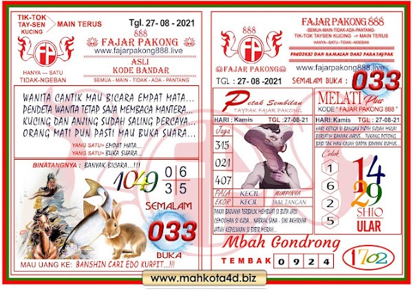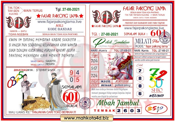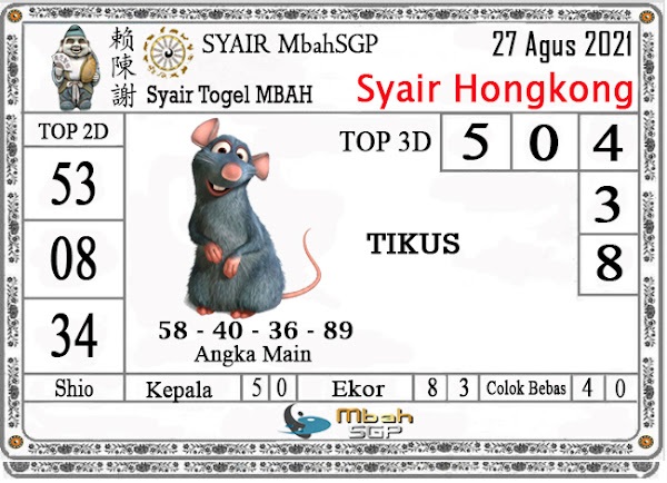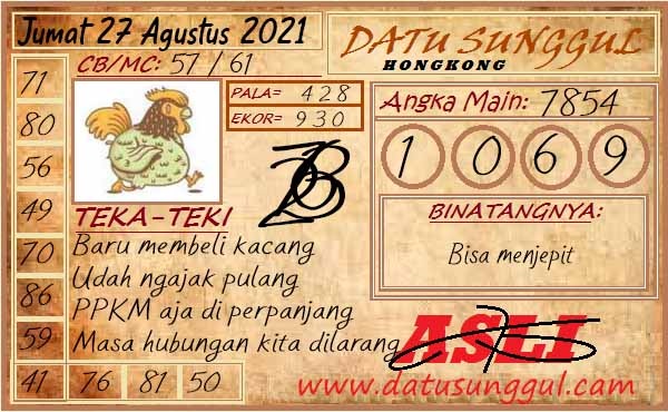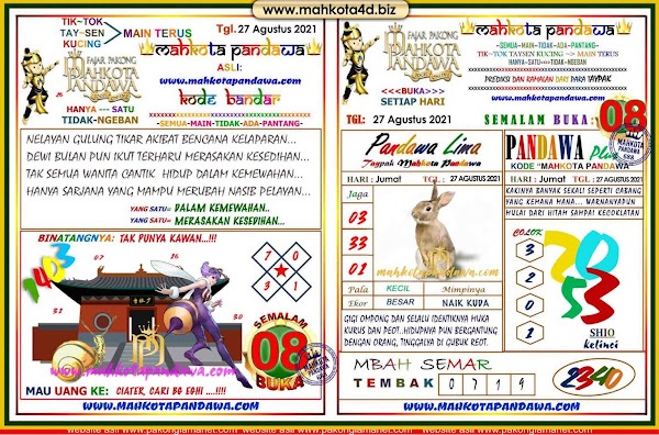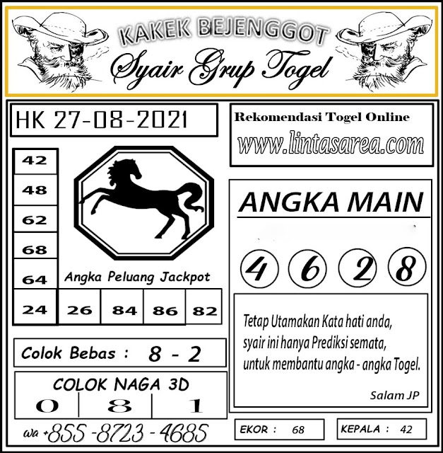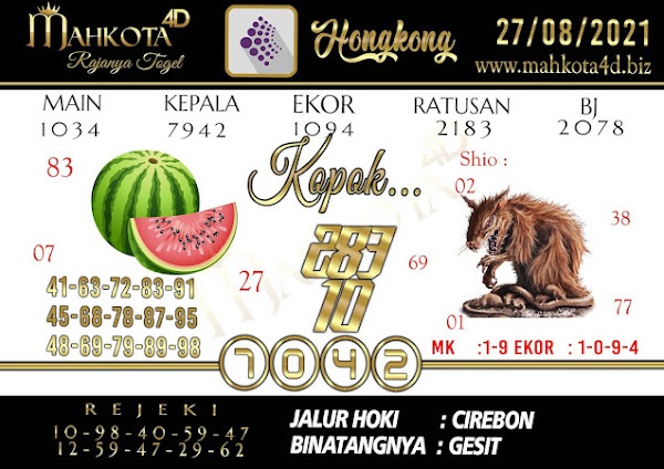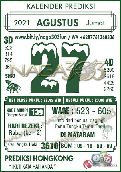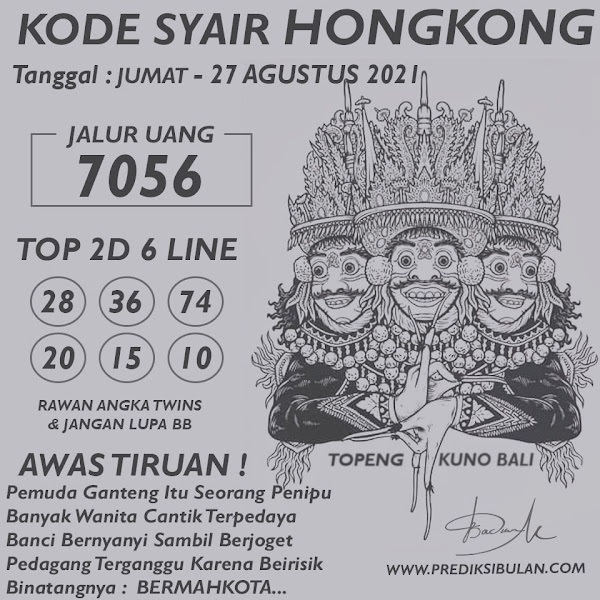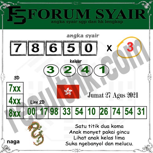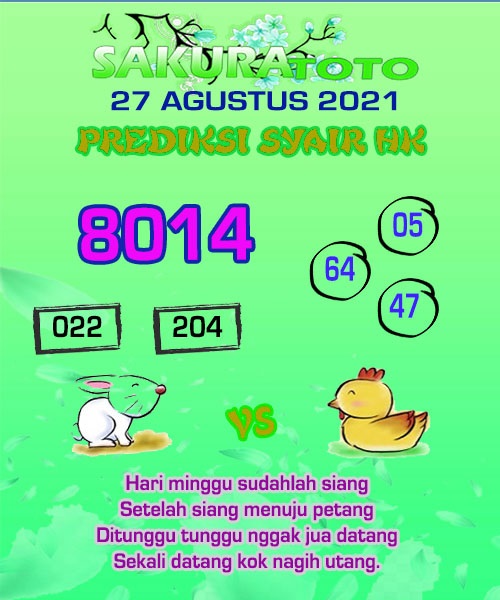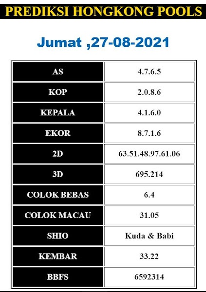 Permainan togel online ini sangatlah membutuhkan kesadaran diri di dalam membaca dan memprediksi suatu angka. Maka dari itu kunjungi selalu kode syair hk hari ini dimana dalam forum syairhk hari ini yang kami terbitkan ini akan jauh lebih memudahkan anda dalam menebak angka keluaran di periode selanjutnya. Kami juga sudah mempersiapkan Prediksi Syair Hongkong Akurat 27 Agustus 2021 untuk anda member tercinta kami.