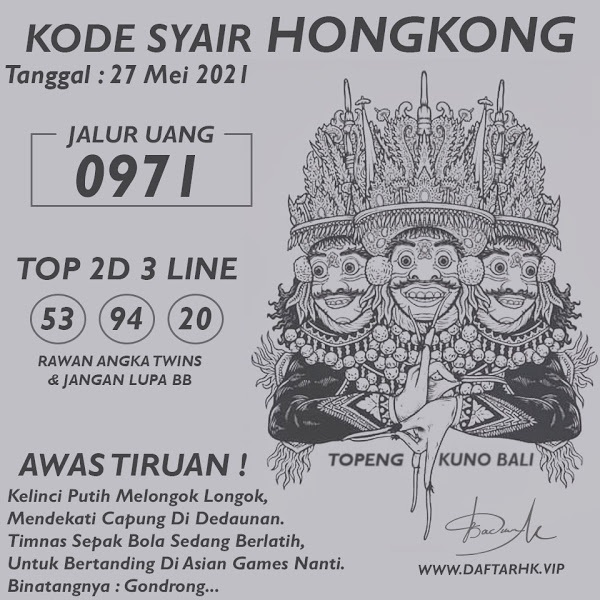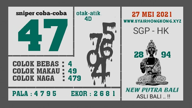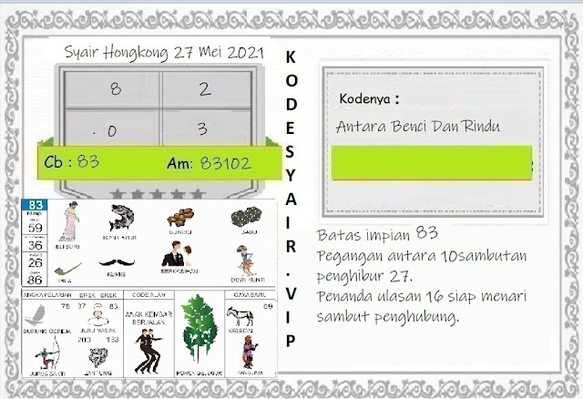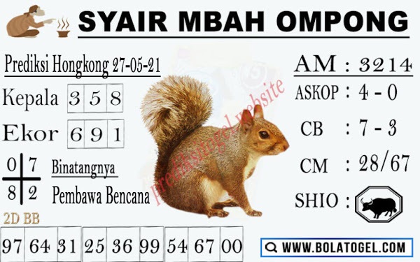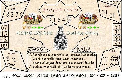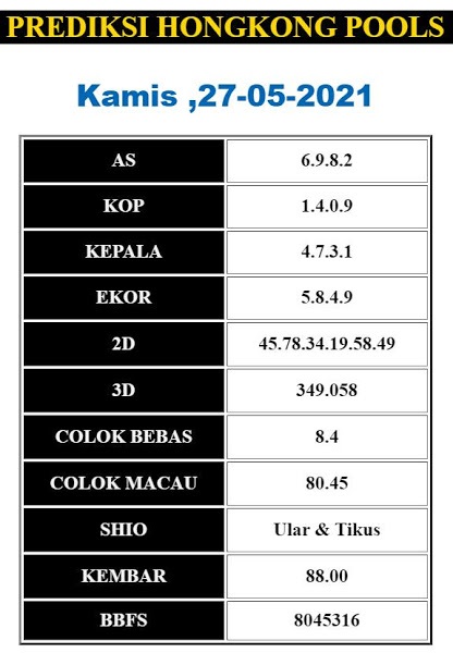 Permainan togel online ini sangatlah membutuhkan kesadaran diri di dalam membaca dan memprediksi suatu angka. Maka dari itu kunjungi selalu kode syair hk hari ini dimana dalam forum syairhk hari ini yang kami terbitkan ini akan jauh lebih memudahkan anda dalam menebak angka keluaran di periode selanjutnya. Kami juga sudah mempersiapkan Prediksi Syair Hongkong Akurat 27 Mei 2021 untuk anda member tercinta kami.