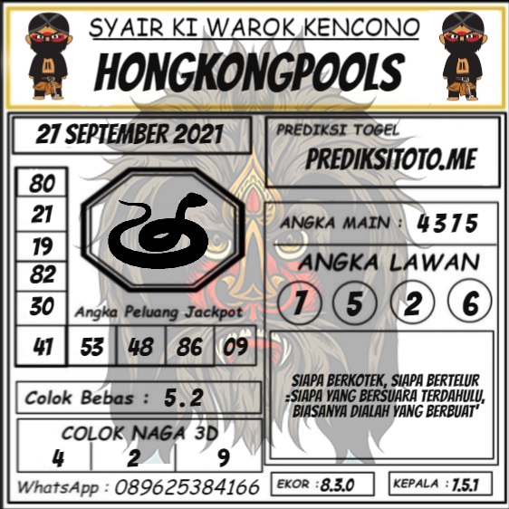Permainan togel online ini sangatlah membutuhkan kesadaran diri di dalam membaca dan memprediksi suatu angka. Maka dari itu kunjungi selalu kode syair hk hari ini dimana dalam forum syairhk hari ini yang kami terbitkan ini akan jauh lebih memudahkan anda dalam menebak angka keluaran di periode selanjutnya. Kami juga sudah mempersiapkan Prediksi Syair Hongkong Akurat 27 September 2021 untuk anda member tercinta kami.
