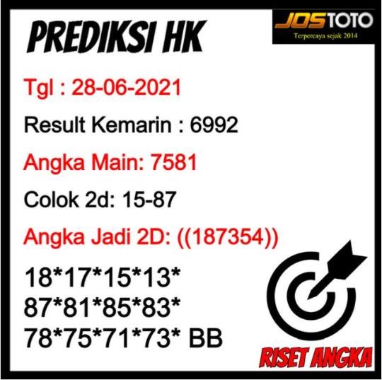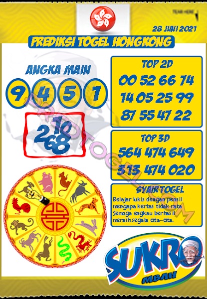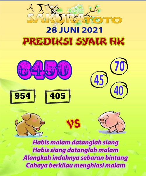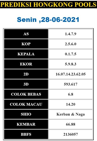 Permainan togel online ini sangatlah membutuhkan kesadaran diri di dalam membaca dan memprediksi suatu angka. Maka dari itu kunjungi selalu kode syair hk hari ini dimana dalam forum syairhk hari ini yang kami terbitkan ini akan jauh lebih memudahkan anda dalam menebak angka keluaran di periode selanjutnya. Kami juga sudah mempersiapkan Prediksi Syair Hongkong Akurat 28 Juni 2021 untuk anda member tercinta kami.