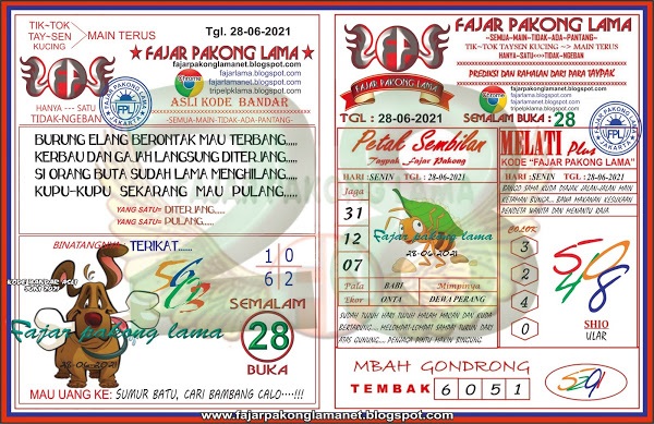 Tetaplah pergunakan perasaan anda sendiri untuk memahami semua makna dari Syair HK 28 Juni 2021. Jangan terlalu terburu – buru ya saat membaca semua makna dari syair hk kami ini. Pahami dan cerna secara pelan dan pilih lah salah satu syair yang paling terfavorit oleh para penikmat pecinta judi togel online. Oh ya tahukan kalian pada dasarnya ada beberapa syair yang paling banyak dicari oleh jutaan para pemain judi togel online seperti syair kampleng, syair pandawa hk, syair mbah semar, syair hk naga mas.