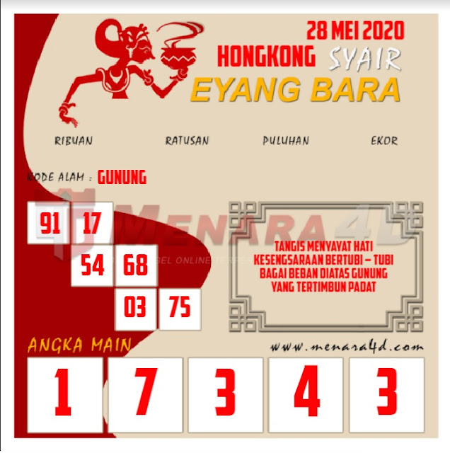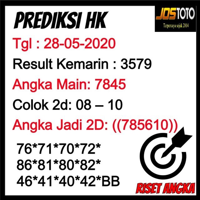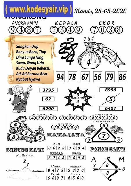 Permainan togel online ini sangatlah membutuhkan kesadaran diri di dalam membaca dan memprediksi suatu angka. Maka dari itu kunjungi selalu kode syair hk hari ini dimana dalam forum syair hk hari ini yang kami terbitkan ini akan jauh lebih memudahkan anda dalam menebak angka keluaran di periode selanjutnya. Kami juga sudah mempersiapkan Prediksi HK Akurat 28 Mei 2020 untuk anda member tercinta kami.
