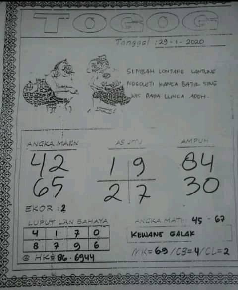 Permainan togel online ini sangatlah membutuhkan kesadaran diri di dalam membaca dan memprediksi suatu angka. Maka dari itu kunjungi selalu kode syair hk hari ini dimana dalam forum syairhk hari ini yang kami terbitkan ini akan jauh lebih memudahkan anda dalam menebak angka keluaran di periode selanjutnya. Kami juga sudah mempersiapkan Prediksi HK Akurat 29 November 2020 untuk anda member tercinta kami.