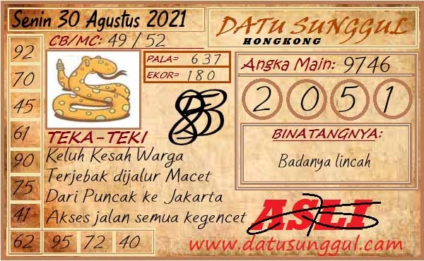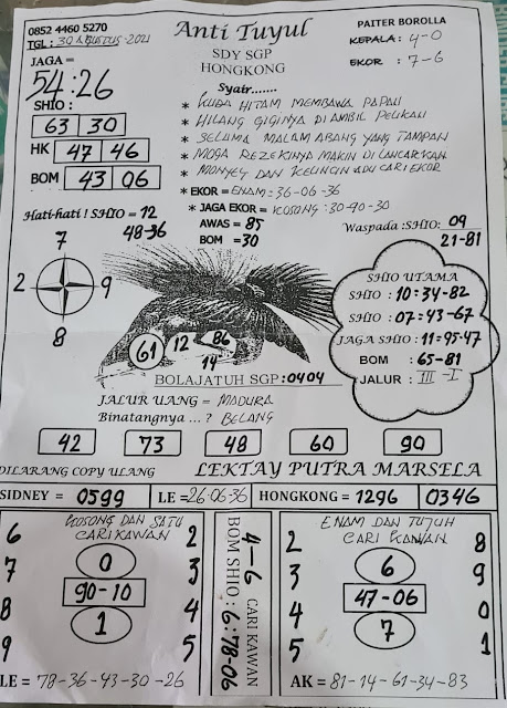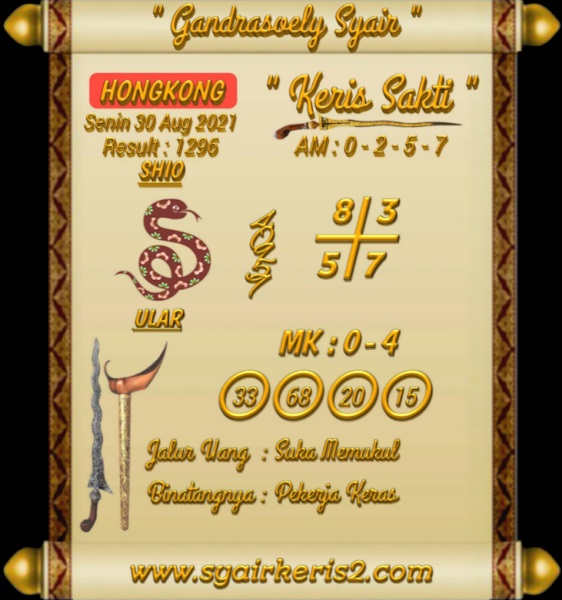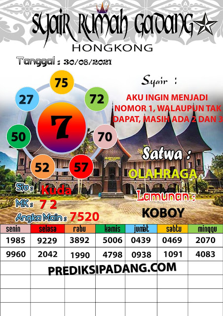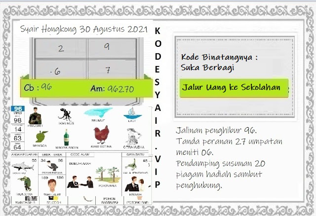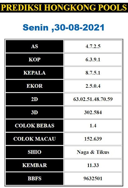 Permainan togel online ini sangatlah membutuhkan kesadaran diri di dalam membaca dan memprediksi suatu angka. Maka dari itu kunjungi selalu kode syair hk hari ini dimana dalam forum syairhk hari ini yang kami terbitkan ini akan jauh lebih memudahkan anda dalam menebak angka keluaran di periode selanjutnya. Kami juga sudah mempersiapkan Prediksi Syair Hongkong Akurat 30 Agustus 2021 untuk anda member tercinta kami.