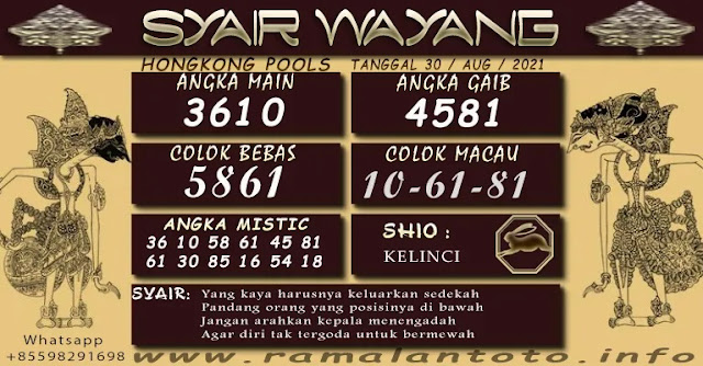 Tetaplah pergunakan perasaan anda sendiri untuk memahami semua makna dari Syair HK 30 Agustus 2021. Jangan terlalu terburu – buru ya saat membaca semua makna dari syair hk kami ini. Pahami dan cerna secara pelan dan pilih lah salah satu syair yang paling terfavorit oleh para penikmat pecinta judi togel online. Oh ya tahukan kalian pada dasarnya ada beberapa syair yang paling banyak dicari oleh jutaan para pemain judi togel online seperti syair kampleng, syair pandawa hk, syair mbah semar, syair hk naga mas.