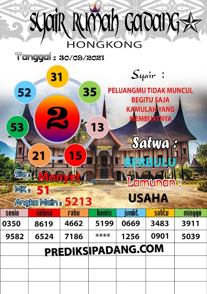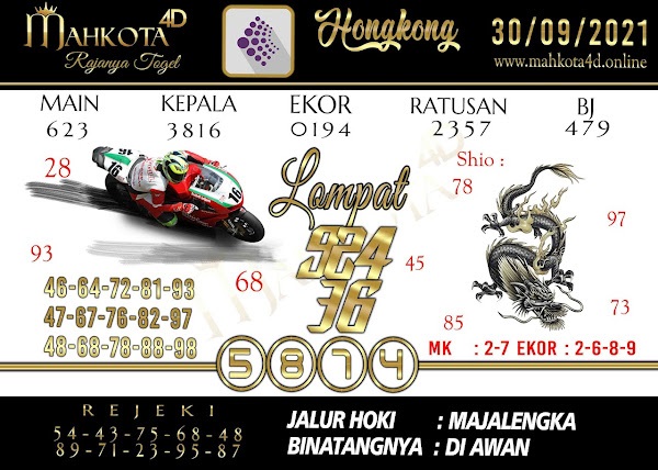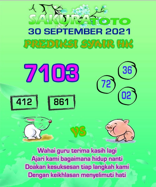 Permainan togel online ini sangatlah membutuhkan kesadaran diri di dalam membaca dan memprediksi suatu angka. Maka dari itu kunjungi selalu kode syair hk hari ini dimana dalam forum syairhk hari ini yang kami terbitkan ini akan jauh lebih memudahkan anda dalam menebak angka keluaran di periode selanjutnya. Kami juga sudah mempersiapkan Prediksi Syair Hongkong Akurat 30 September 2021 untuk anda member tercinta kami.