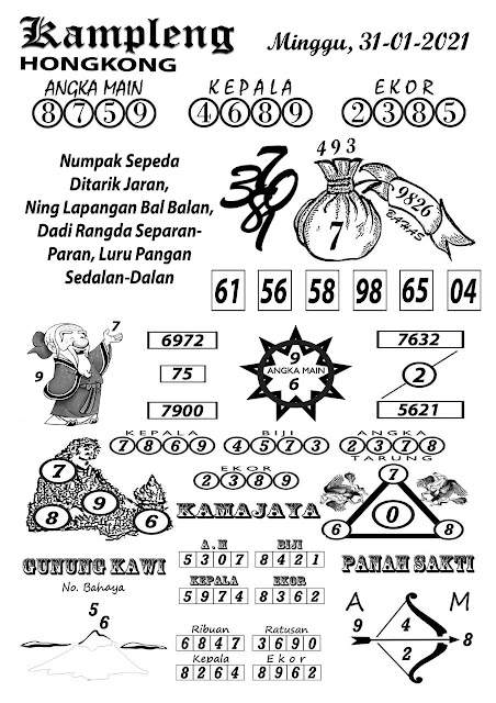 Tetaplah pergunakan perasaan anda sendiri untuk memahami semua makna dari Syair HK 31 Januari 2021. Jangan terlalu terburu – buru ya saat membaca semua makna dari syair hk kami ini. Pahami dan cerna secara pelan dan pilih lah salah satu syair yang paling terfavorit oleh para penikmat pecinta judi togel online. Oh ya tahukan kalian pada dasarnya ada beberapa syair yang paling banyak dicari oleh jutaan para pemain judi togel online seperti syair kampleng, syair pandawa hk, syair mbah semar, syair hk naga mas.