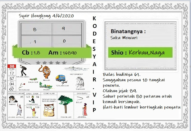 Tetaplah pergunakan perasaan anda sendiri untuk memahami semua makna dari Syair HK 4 juni 2020. Jangan terlalu terburu – buru ya saat membaca semua makna dari syair hk kami ini. Pahami dan cerna secara pelan dan pilih lah salah satu syair yang paling terfavorit oleh para penikmat pecinta judi togel online. Oh ya tahukan kalian pada dasarnya ada beberapa syair yang paling banyak dicari oleh jutaan para pemain judi togel online seperti syair kampleng, syair pandawa hk, syair mbah semar, syair hk naga mas.