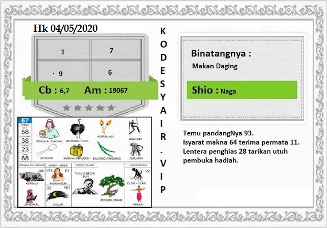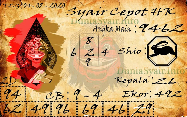 Permainan togel online ini sangatlah membutuhkan kesadaran diri di dalam membaca dan memprediksi suatu angka. Maka dari itu kunjungi selalu kode syair hk hari ini dimana dalam forum syair hk hari ini yang kami terbitkan ini akan jauh lebih memudahkan anda dalam menebak angka keluaran di periode selanjutnya. Kami juga sudah mempersiapkan Prediksi Syair HK Akurat 4 Mei 2020 untuk anda member tercinta kami.