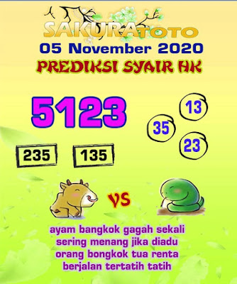 Permainan togel online ini sangatlah membutuhkan kesadaran diri di dalam membaca dan memprediksi suatu angka. Maka dari itu kunjungi selalu kode syair hk hari ini dimana dalam forum syairhk hari ini yang kami terbitkan ini akan jauh lebih memudahkan anda dalam menebak angka keluaran di periode selanjutnya. Kami juga sudah mempersiapkan Prediksi HK Akurat 5 November 2020 untuk anda member tercinta kami.